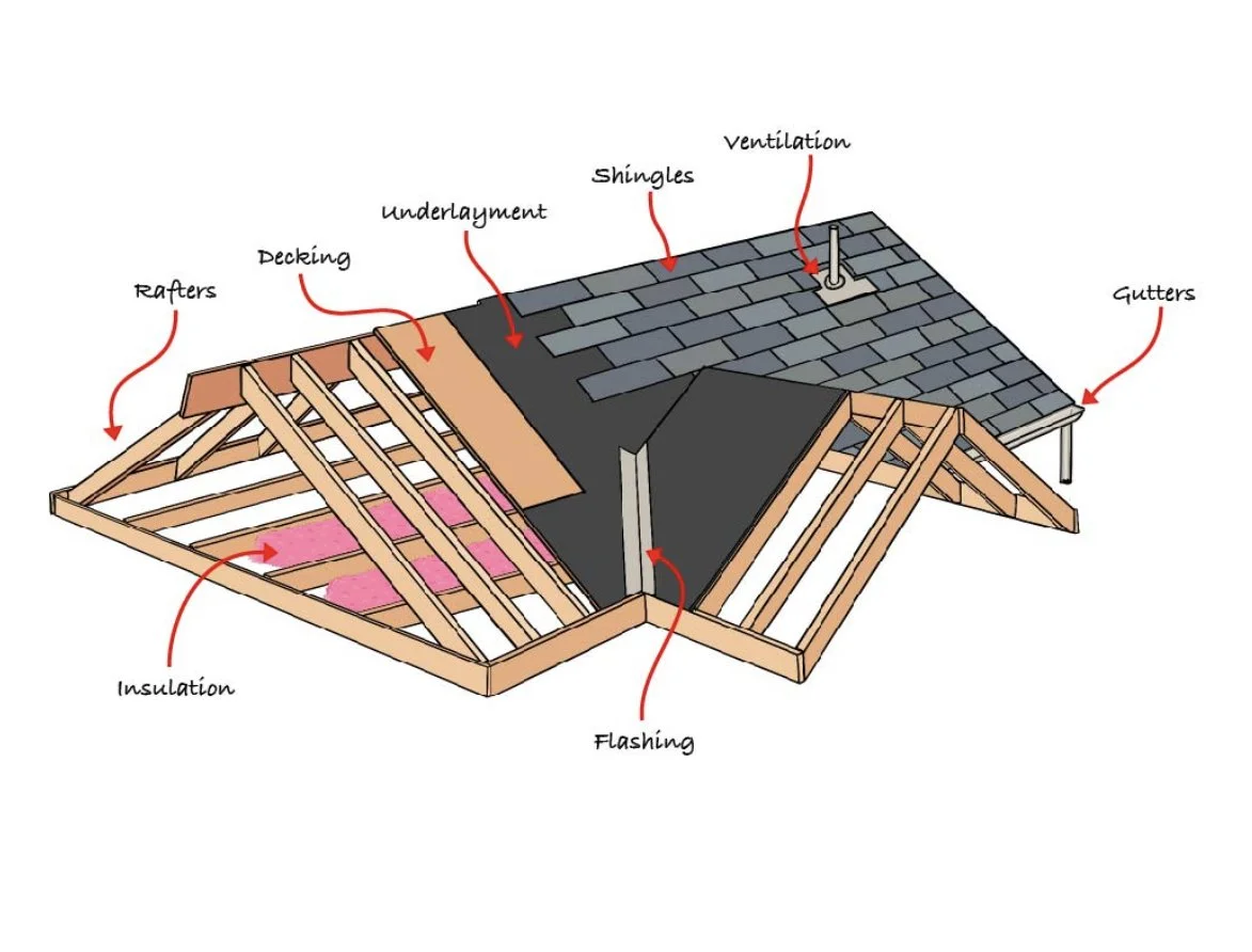 Underlayment acts as an additional shield against moisture, the underlayment is a crucial layer atop the decking. This moisture barrier enhances the roof's ability to withstand the elements and contributes to the overall durability of the roofing system.